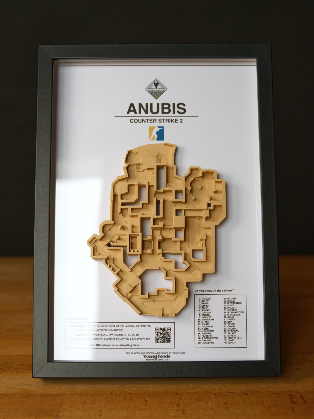 On each map you will find the most important facts, a description of all callouts, and if you want more details and interesting facts about the map, just scan the QR code! 📜
